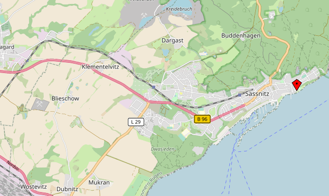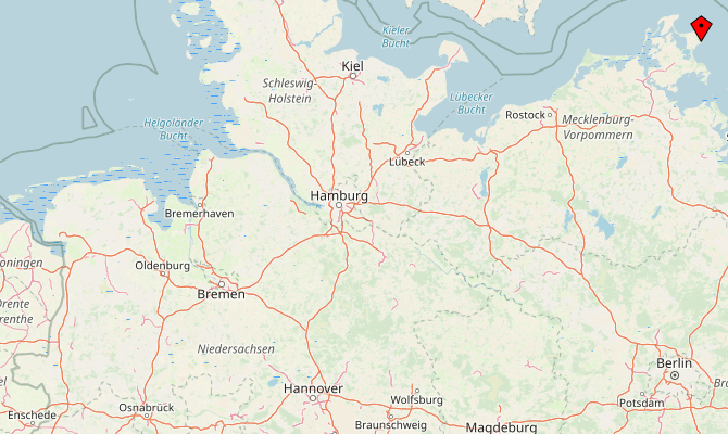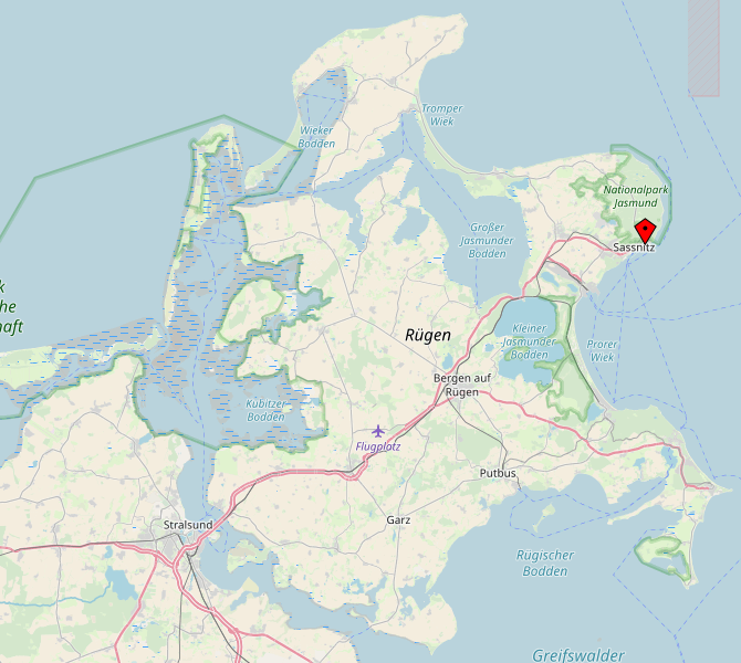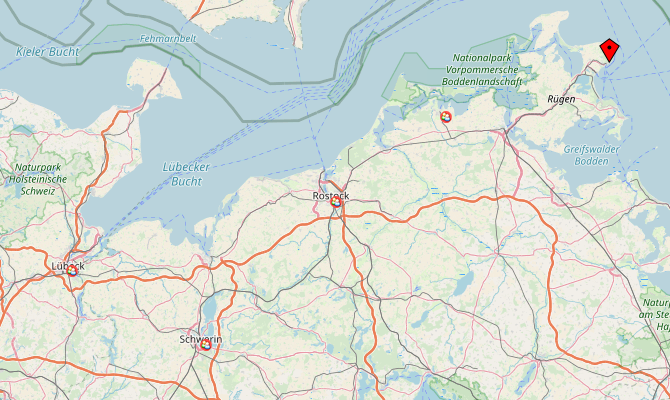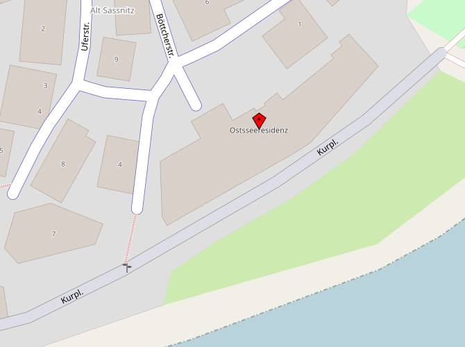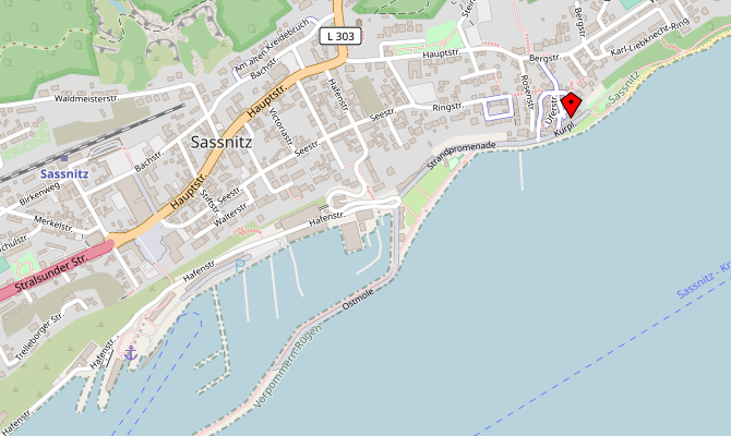 Obwohl die Anschrift Strandpromenade 8, 18546 Sassnitz heisst, muss man in das Navigationsgerät „Böttcherstrasse“ eingeben, um ans Ziel zu gelangen.